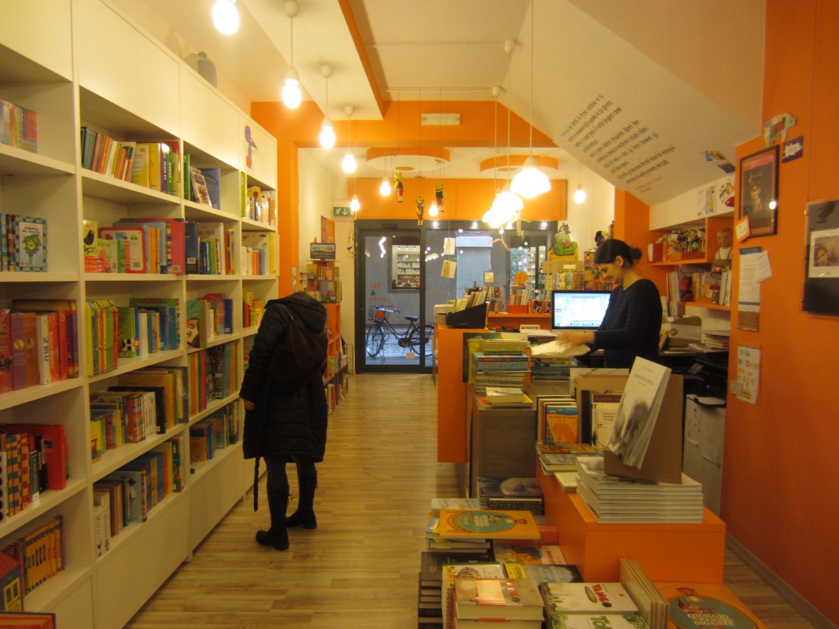 Aperta poco più due anni fa, la libreria per ragazzi Pel di Carota fa capolino in una viuzza del centro di Padova e attira subito l’attenzione di chi vi passeggia: la piccola vetrina colorata, l’arancio che domina sugli altri colori, tutto invita ad entrare. Questo angolo felice di via Boccalerie è gestito da tre giovani soci: due fratelli, David e Arianna Tolin, e Maurizio Citran.